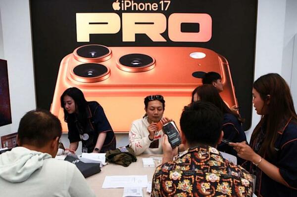iPhone17の販売は好調だ(写真は10月17日インドネシアの首都ジャカルタで、写真:ZUMA Press/アフロ)