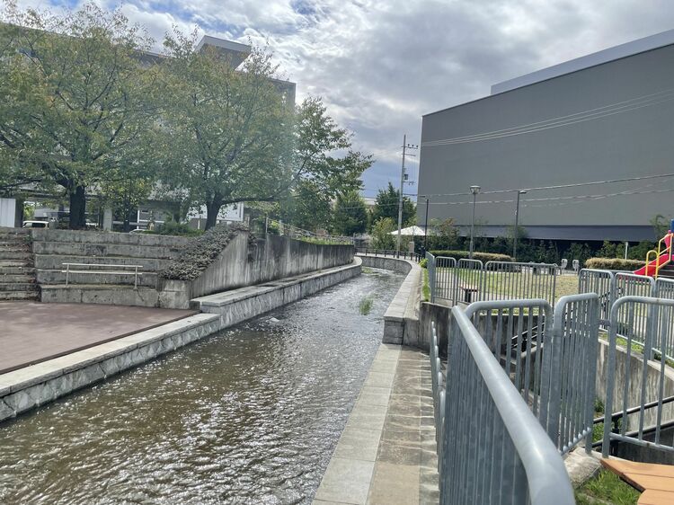 ぶらぶら歩いていたら、唐突にだだっ広い芝生の公園に出た。市の整備事業として10月19日にオープンした南岩本公園だ。アートを楽しんで水辺を歩き公園でくつろぐ。そんな動線が整いつつある。