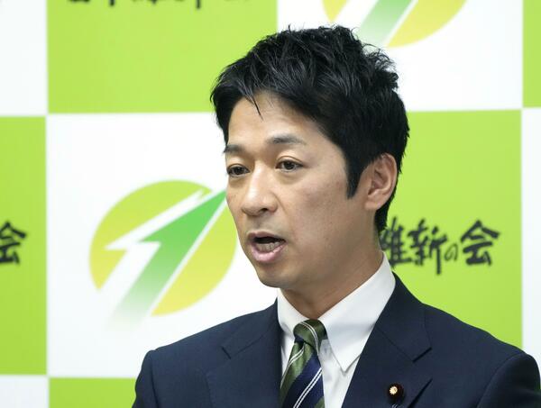 日本維新の会の役員会であいさつする藤田文武共同代表=2025年11月5日、国会(写真:共同通信社)