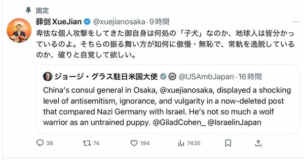 しかし、当の薛剣氏は今年6月、ナチスドイツとイスラエルを同列に表現した自身のX投稿に、ジョージ・グラス駐日米国大使が「戦狼外交官というより、躾がなっていない子犬だ」とXに反論投稿した際には、「卑怯な個人攻撃をしてきた御自身は何処の『子犬』なのか」と再反論。ネット民からは「いったいどの口が言うのか」などと呆れられたこともある。