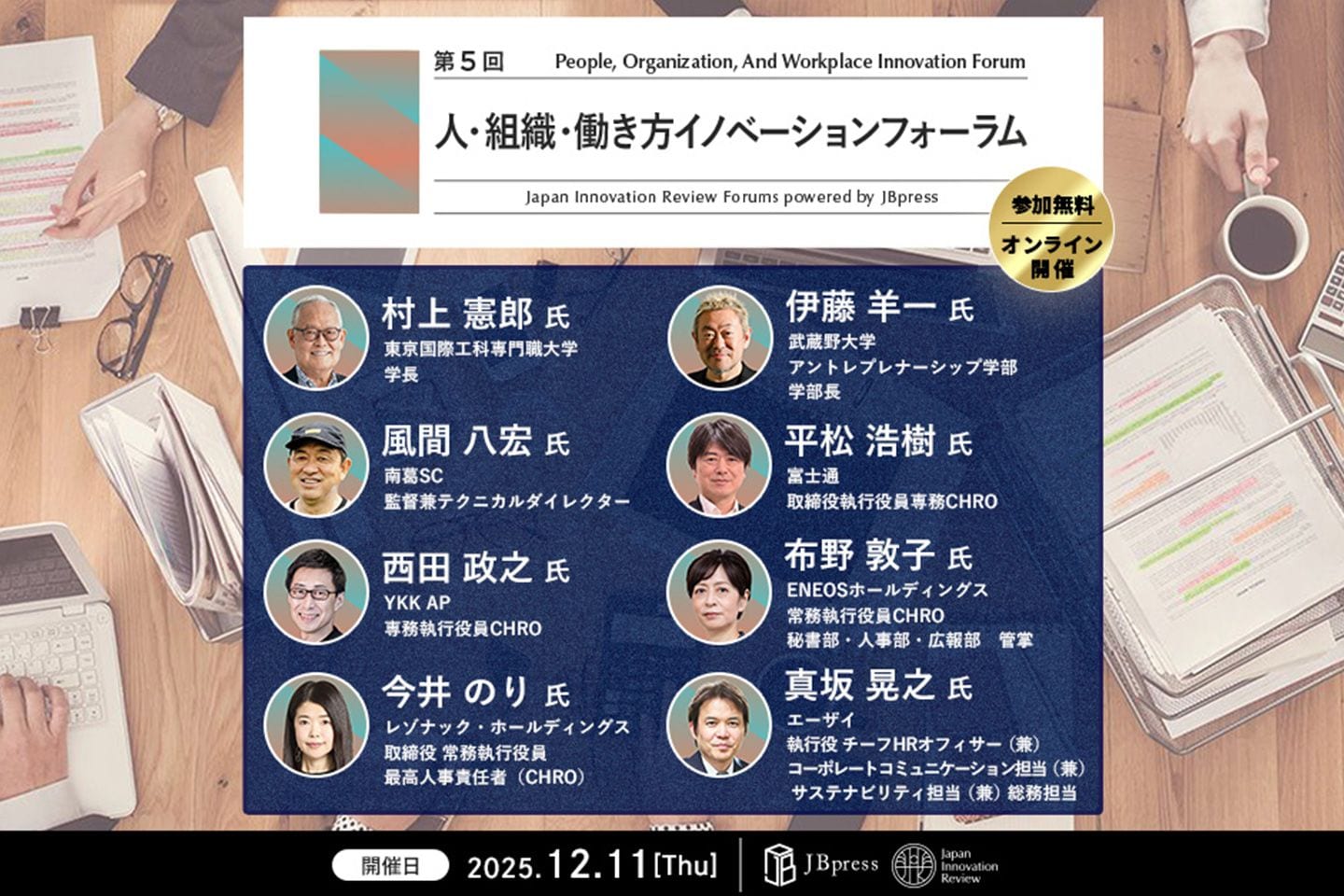 JBpress/Japan Innovation Reviewでは12月11日(木)に「第5回 人・組織・働き方イノベーションフォーラム」を開催します。