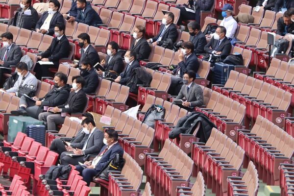 プレーを終えた選手は、ミックスルームでメディア、報道陣のインタビューを受けた。こうした風景はこれまでと変わらない。