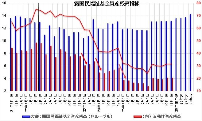 ●2025年11月1日現在の国民福祉基金資産残高: 13.201兆ルーブル(GDP=国内総生産比6.0%/1640億ドル相当)