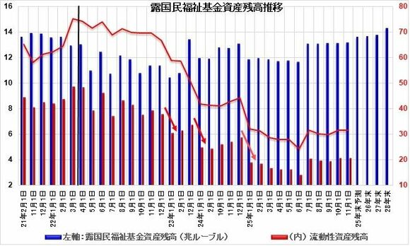 露財務省は11月10日、今年11月1日現在の露国民福祉基金資産残高を発表。なお、この資産残高は預貯金残高ではなくあくまでも資産残高にて、過去に投融資した(不良)資産等も含みます。
