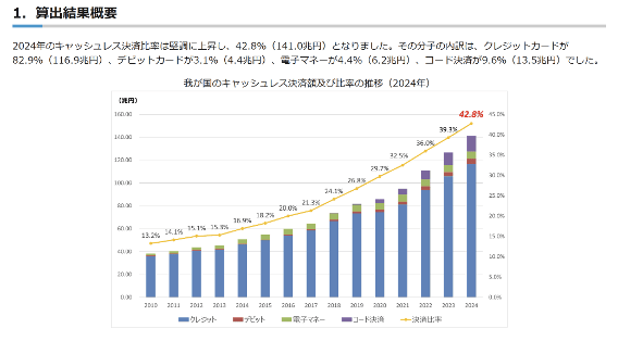 政府は2025年6月までにキャッシュレス決済の比率を40%まで引き上げることを目標にしていましたが、2024年中に42.8%を達成し、今後は80%を目指すとしています。