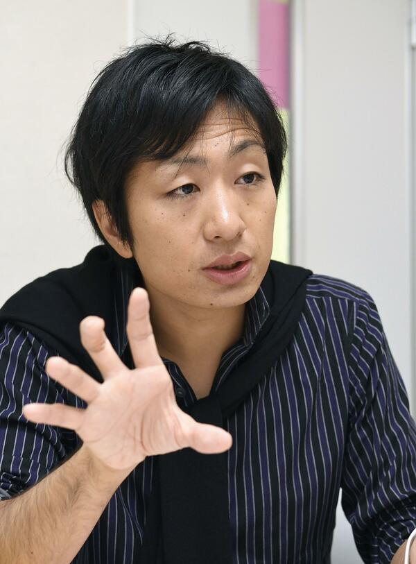 インタビューに答える認定NPO法人フローレンス創業者の駒崎弘樹氏(写真:共同通信社)