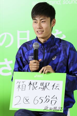続いて、箱根駅伝予選会で日本人トップの個人7位に食い込んだ中央学大・近田陽路(4年)は「2区65分台」を目標に掲げた。