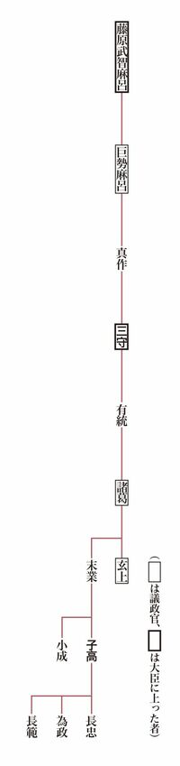 なお、『尊卑分脈(そんぴぶんみゃく)』には、子高の官位は、「越後・三河・備前・伊賀・山城・讃岐等の守」「従四位下」「中宮少進」と記されているが、本当にそれほど出世したかどうかは不明である。『今昔物語集(こんじゃくものがたりしゅう)』には承平(じょうへい)四年に越後守とあるが、他の国については傍証史料がない。ちなみに、「母藤原氏」とも記されている。『尊卑分脈』には、子高の子として、長忠(ながただ)・為政(ためまさ)・長範(ながのり)の三人の名が挙げられている。