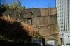 外桜田門の石垣。材質の異なる石を切込ハギ・乱積の技法でパッチワークのように積んでいる
