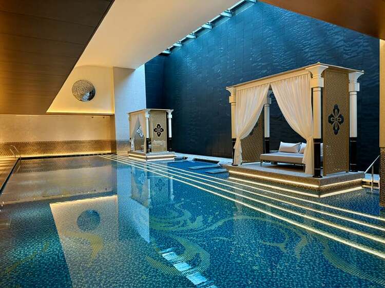 スパのプール。温浴施設は炭酸泉、温泉、サウナとあり、スパトリートメントにはアウグスティヌス・バーダーを使用するメニューも豊富