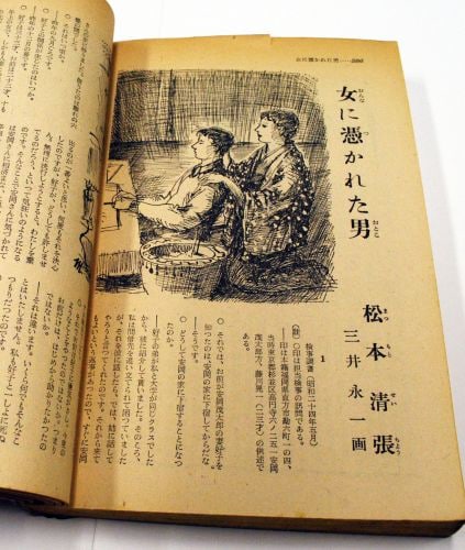 松本清張の初期の短編小説『女に憑かれた男』が掲載されている文芸誌(北九州市の火野葦平資料館、写真:共同通信社)