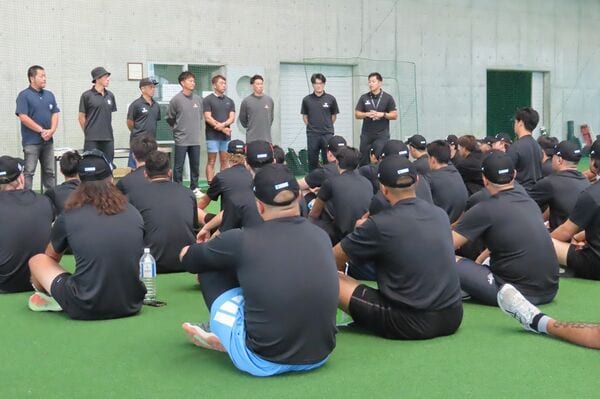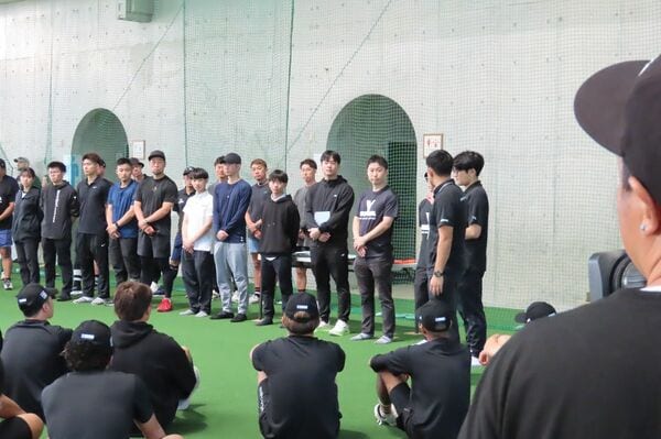 「ここに集まっている人たちは、基本的に野球が大好きだと思いますが、怪我に気をつけて、頑張ってください。成功体験を自信にしてもらいたいですが、同時に失敗からもいろんなことを学べると思います。これから起こることについて、後でともに語り合ってみてください。野球が上手くなるのも大事ですが、一人の人間としても何かしら成長してください。みんなで頑張っていきましょう」