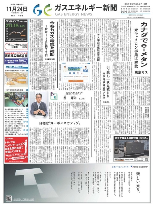 【ガスエネルギー新聞】都市ガス会社の今を報道する業界唯一の新聞。天然ガス、LNG、燃料電池などガス業界の技術や製品情報、企業ニュースの他、周辺業界や行政の動きなども幅広く報道する。2023年7月から新メディア「ガスエネWeb」を公開中。
