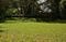 主郭の広場。画面奥に土塁が横たわっており、その向こうに空堀を隔てて二ノ曲輪がある