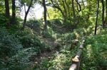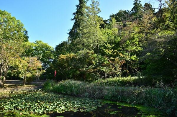 京王線の京王片倉駅を降りたら、すぐ前を通っている国道16号線を南に下る。北野街道と湯殿川を渡ったところが片倉城跡公園で、緑地の中に池やベンチがあり、近隣の人たちの憩いの場となっている。ここの池の裏手にある丘が片倉城。地形でいうと、西から伸びてきた小比企(こびき)丘陵の支脈の一つが、湯殿川と兵衛川の合流点に臨む先端部にあたっている。