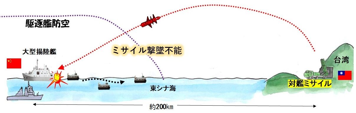駆逐艦等にミサイルを撃ち落とせる防空能力が備わっていないと、台湾への上陸作戦はできないということである。