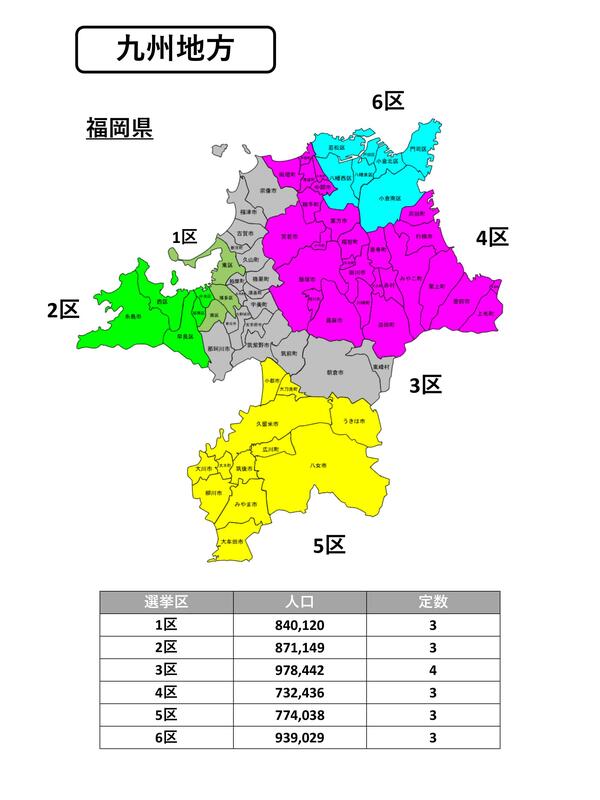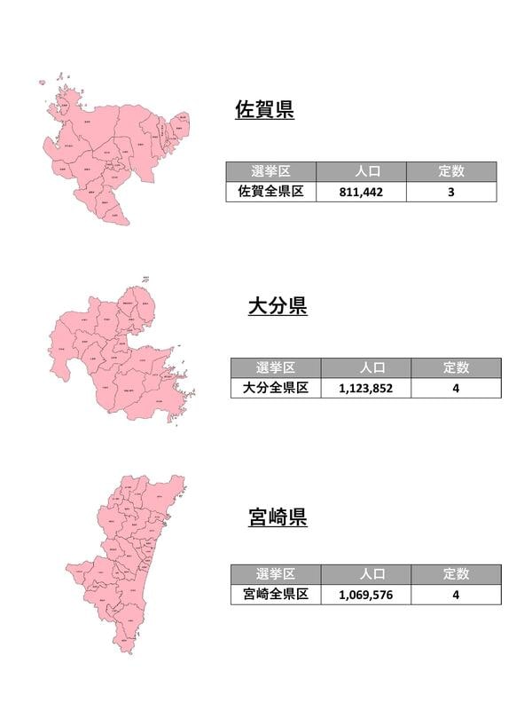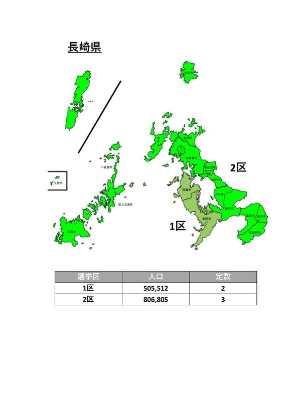 自民・維新が検討合意した「中選挙区制」、導入で選挙区はこうなる【47都道府県・新区割り完全シミュレーション】 立憲衆院議員らが全154選挙区の独自案を初公開、超党派で静かに熱帯びる衆院「中選挙区連記制」への改革機運 津村 啓介 立憲民主党衆議院議員 著者フォロー フォロー中 大井 赤亥 政治学者 著者フォロー フォロー中 政治 2025.12.3(水) Tweet 1 2 3 4 5 6 7 8 9 10 【中選挙区連記制・区割り案】九州地方 【区割り案】福岡県 ギャラリーページへ 【区割り案】長崎県 ギャラリーページへ 【区割り案】熊本県 ギャラリーページへ 【区割り案】佐賀県、大分県、宮崎県 ギャラリーページへ 【区割り案】鹿児島県 ギャラリーページへ 【区割り案】沖縄県 ギャラリーページへ Tweet あわせてお読みください 自民党の衝撃的敗北で動き出す「大連立」、政局のカギは「中選挙区連記制」への選挙改革【立憲国会議員が緊急提言】 47都道府県・全465議席シミュレーション、政権中枢がほのめかす新衆院選制度でこうなる 津村 啓介 | 大井 赤亥 【やさしく解説】なぜ今、議員定数削減なのか…政治とカネ問題から目を逸らすため?削減の歴史と課題とは フロントラインプレス 【やさしく解説】なぜ企業・団体献金はなくならないのか?50年続く「政治とカネ」の問題、議員定数削減で後回しに フロントラインプレス 「女性初・高市首相」誕生を祝えぬリベラル派、「女装した安倍晋三」「中身は男」の言説が促す現役世代の左派離れ 【大井赤亥の国会通信】「左派=改革に水を差す保守・老害」、現役世代の認識を変える道は? 大井 赤亥 「口裂け女」「肉屋を支持する豚」高市首相や参政党に向かうリベラル派の過剰な正義、混迷のアイデンティティ政治 【大井赤亥の国会通信】タガの外れた言説で世論と乖離する左派、求められる目標の再定義 大井 赤亥 政治を読む バックナンバー 一覧 「政治家は皆嘘つきだ」と私が公言するワケ、自民・維新の定数削減もそうだった、政治批評に欠かせない距離の取り方 西田 亮介 給食無償化への懸念「中身がショボくなる」、立憲が推す「食料品消費税ゼロ」は給食の質低下を止める切り札となるか 西田 亮介 | 吉田 晴美 「ちょっと吉田さん、ヤバいよ」立憲幹部が絶句した大学院生の評価、SNSで叩かれやすい野党第一党のリアルな現在地 西田 亮介 | 吉田 晴美 【斎藤知事再選から1年】NHK党・立花氏は逮捕、自死に追い込まれた元兵庫県議の妻の決意と他人事貫く斎藤知事 松本 創 日本国旗を燃やすのはけしからんが…参政党が主張「国旗損壊罪」新設に反対する理由、風刺も芸術的表現も委縮の恐れ 西田 亮介 維新・藤田共同代表の秘書への公金還流疑惑、法の隙間を突き「法的にOK」で済むはずがない、政治家が守るべき倫理観 西田 亮介 Sponsored フォロー機能について フォロー機能とは、指定した著者の新着記事の通知を受け取れる機能です。 フォローした著者の新着記事があるとヘッダー(ページ上部)のフォロー記事アイコンに赤丸で通知されます。 フォローした著者の一覧はマイページで確認できます。 ※フォロー機能は無料会員と有料会員の方のみ使用可能な機能です。 設定方法 記事ページのタイトル下にある「フォローする」アイコンをクリックするとその記事の著者をフォローできます。 確認方法 フォロー中の著者を確認したい場合、ヘッダーのマイページアイコンからマイページを開くことで確認できます。 解除方法 フォローを解除する際は、マイページのフォロー中の著者一覧から「フォロー中」アイコンをクリック、または解除したい著者の記事を開き、タイトル下にある「フォロー中」アイコンをクリックすることで解除できます。 ご登録 ログイン