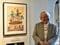 「描く人、安彦良和」展示風景。描き下ろしイラストを説明する安彦良和氏 ©︎創通・サンライズ ©︎東北新社 ©︎高千穂&スタジオぬえ・サンライズ ©︎安彦良和/講談社 ©︎安彦良和/KADOKAWA ©︎安彦良和/THMS ©︎安彦良和
