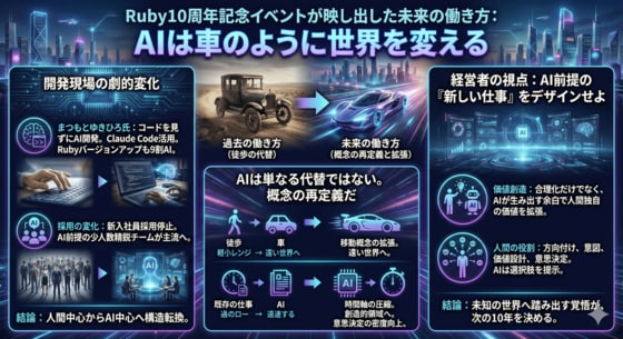移動手段としての車が人間の行動範囲を拡張したのと同じように、AIは仕事の時間軸そのものを圧縮し、人間が創造的な領域に割ける時間を飛躍的に増やします。