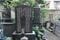 正法寺にある墓碑銘(左)と墓石(右、蔦重は上段左から3つめ)