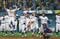 2005年11月、社会人野球日本選手権の決勝戦で、11回裏、NTT西日本にサヨナラ勝ちし、ベンチを飛び出し大喜びする松下電器ナイン=大阪ドーム(写真:共同通信社)