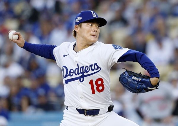 今年10月、ワイルドカードシリーズのレッズ戦に先発し、7回途中2失点で勝利投手となったときのドジャース・山本由伸(写真:共同通信社)