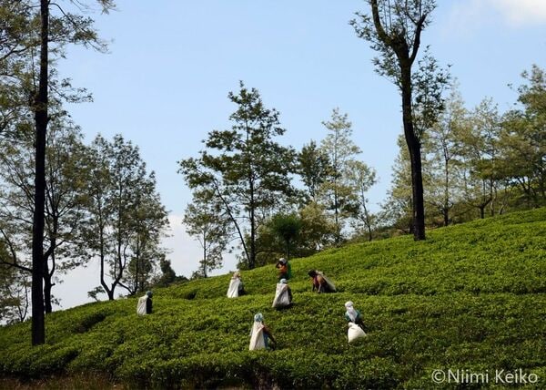 茶畑では、人の手で茶葉が摘み取られていました。ヌワラエリアでの茶摘みシーズンは、12月〜2月です。