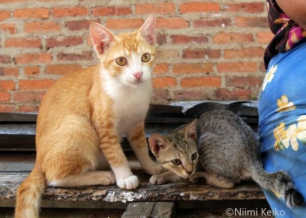 開け放たれた玄関から、猫が顔を出していました。この家の奥さんは、「涼しい場所は猫が知っている」と言っていました。日中は暑いネゴンボでは、猫がいる場所を参考にして涼む人もいるのだそうです。
