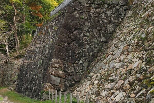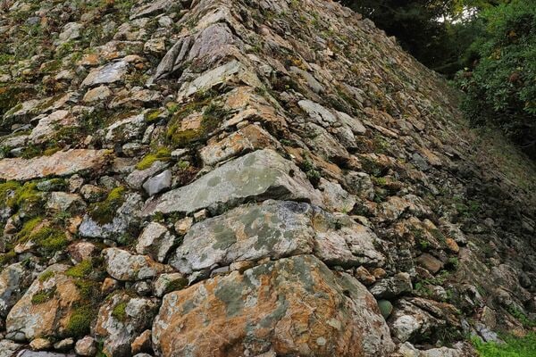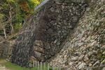 本丸北面の石垣。画面手前・中ほど・奥と積み方が異なっており、江戸時代に積み直しが繰り返されたことがわかる