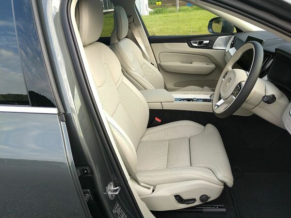 ボルボXC60の前席。シートのタッチ、体圧分散などの機能性はプレミアムセグメントに相応しいものだった(筆者撮影)
