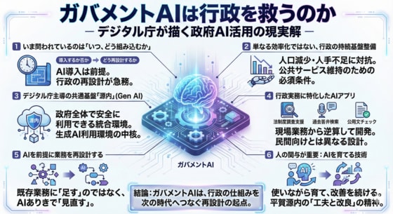 ガバメントAIは、行政を楽にする魔法の道具ではありません。行政という仕組みを、次の時代に持ち越すための再設計の起点になります。
