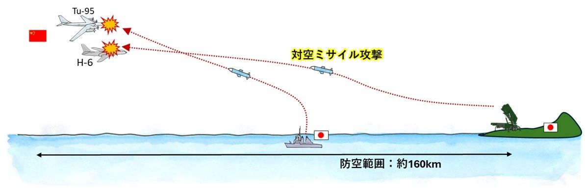また、日本海や西太平洋上には、遊弋している海上自衛隊のミサイル護衛艦が存在する。爆撃機等は、これらからの射撃も受けることになる。