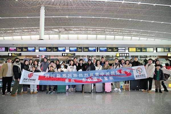 コロナ禍で運休になっていた中国国際航空の重慶-東京(成田)の直行便は昨年1月26日に運航再開されたばかり。その初日には多くの中国人旅行客が東京に向かった(写真:新華社/共同通信イメージズ)