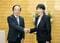 会談を前に日銀の植田総裁(左)と握手する高市首相(写真:共同通信社)