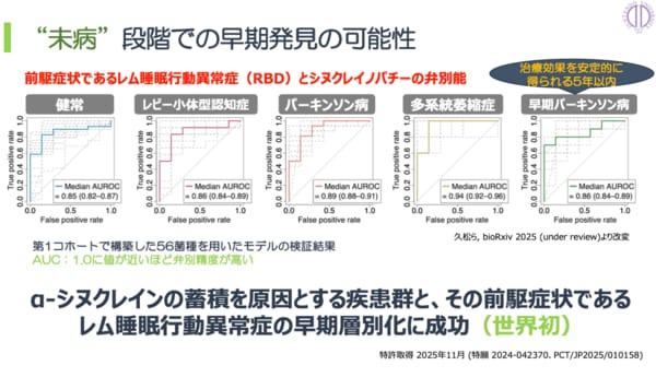 「パーキンソン病は発症から5年以内であれば安定した治療効果が得られると言われています。ただしα-シヌクレインをバイオマーカーとした検査では、どの病気なのかを見分けるのはまだまだ難しい。ところが唾液マイクロバイオームを活用すれば、早期のパーキンソン病を含め、どの疾患かを見分けられる、すなわち早い段階から適切な治療を施せる可能性が出てきます」