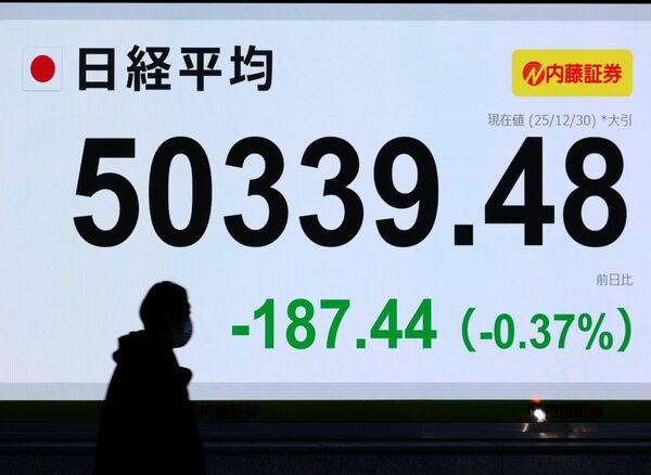 2025年末の日経平均は5万円を超えた(2025年12月30日撮影、写真:つのだよしお/アフロ)