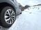 試乗車のボディ寸法は、全長4655mm×全幅1830mm×全高1730mmで、車両重量は1780kg。ノーマルではオールシーズンタイヤを標準装備するが、今回は深い雪を想定して、ステッドレスタイヤのヨコハマ「ice GUARD(G075)」に履き替えた。