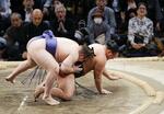 満天下の注目を集めた新大関柏戸と新関脇大鵬の対戦。柏戸が上手投げで勝利(昭和35年秋場所9日目)