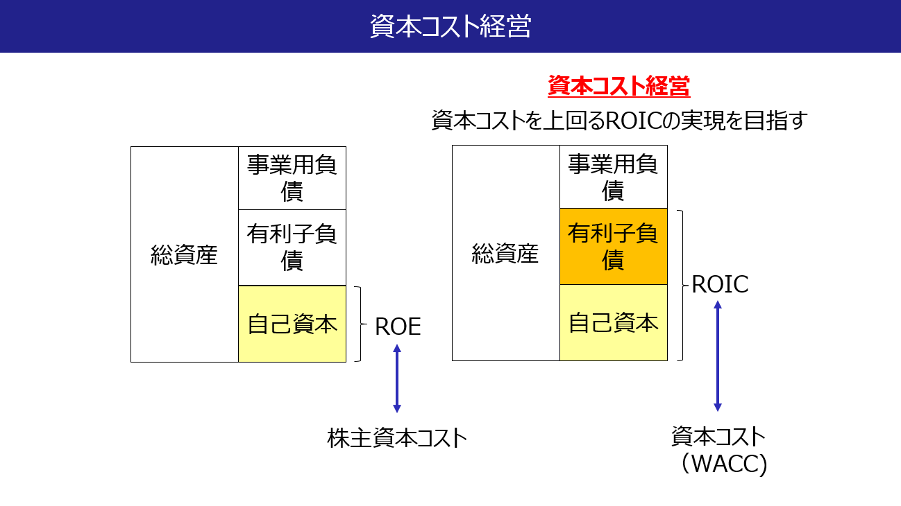 1つは各事業部などにブレイクダウンして経営に生かせる点だ。ROEは、自己資本を使ってどれだけ利益を出したかを表す指標であるのに対し、ROICは、投下資本を使ってどれだけ利益を出したかを表すため、事業部ごとの計算がしやすい。