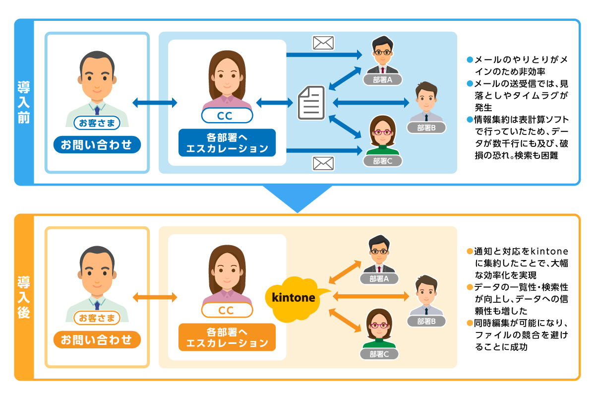 結果として、所管部署への問合せ内容をエスカレーションするための情報共有基盤としてキントーンが採用されることになったのだ。