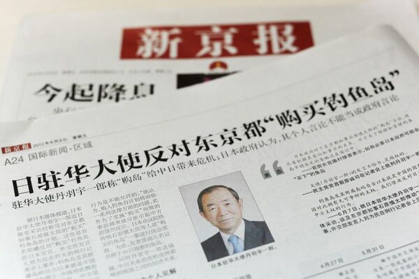 2012年6月8日、丹羽宇一郎駐中国大使の発言を報じる中国紙新京報(写真:共同通信社)