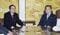 米海軍横須賀基地を訪問し、原子力空母「ジョージ・ワシントン」で演説するトランプ米大統領と高市早苗首相=2025年10月28日、神奈川県横須賀市(写真:共同通信社)