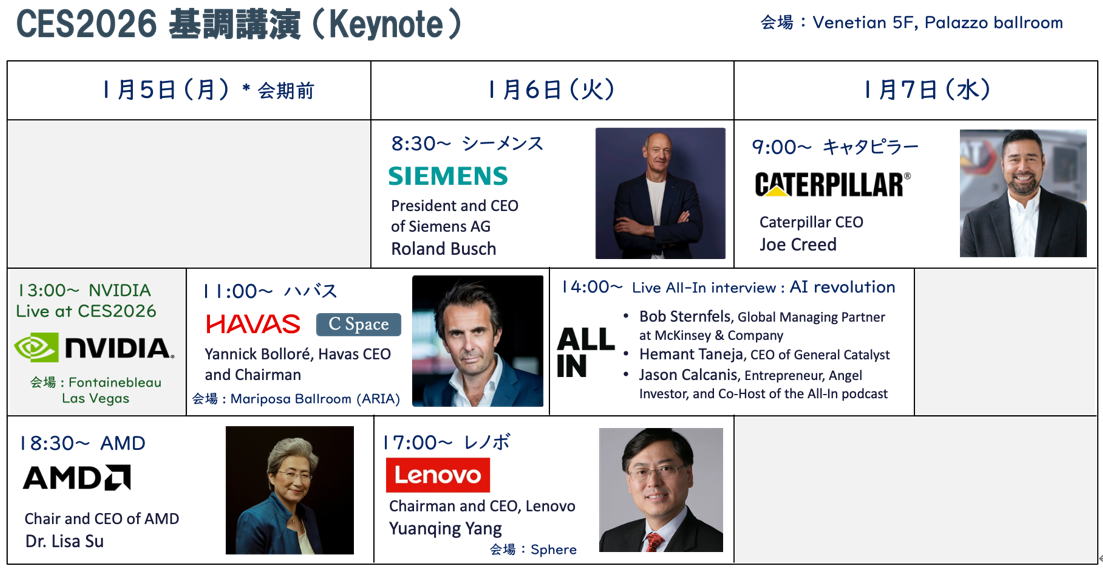 CES2026基調講演のラインナップ