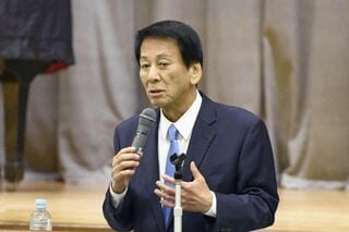 BSフジ『杉良太郎の人生感―明日を生きるヒント―』の番組収録で、高校生の質問に答える杉良太郎(2025年7月9日、郁文館高等学校で)