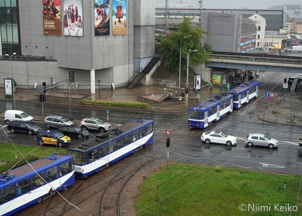 旧市街から新市街方向を見たところです。旧市街は一般の乗用車は乗り入れ禁止なので、周囲にある駐車場に停める決まりになっています。写真の右上方向に広大な敷地のマーケット「リガ中央市場」があります。