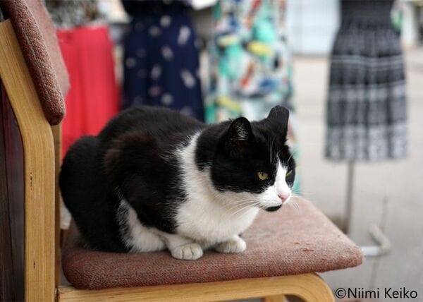 衣料品店は開店の時間がやや遅く、マネキンを展示するなど開店準備をしている間に、猫たちが集まってきていました。開店準備が整ったら、猫たちのごはんの時間です。