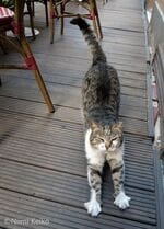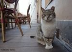 市場の隅にある壊れた椅子に暖かそうなコートがかけられていました。猫は器用に上に乗り、コートで顔を拭っていました。