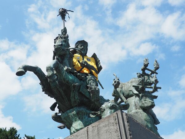 岐阜駅前に輝く織田信長像。徳川家康に対しては兄貴風を吹かせていたか?