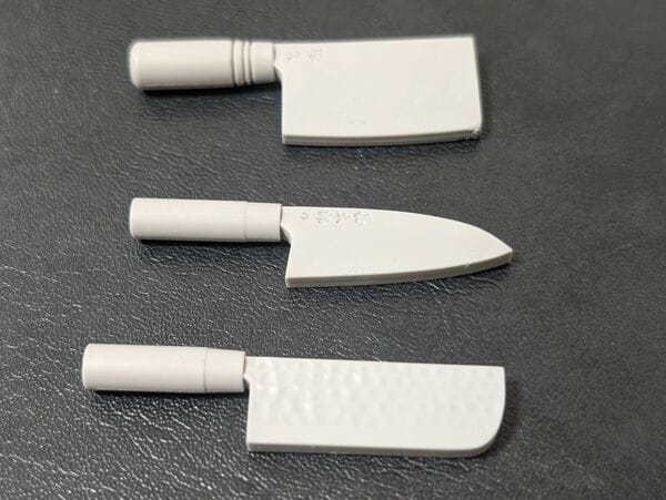 手のひらサイズのカプセルから出てくるのは、消しゴムのかたちをした「包丁」。出刃包丁、葉切り包丁、中華包丁、それぞれに「ステンレスグレー」「はがねグレー」「消しゴムホワイト」というバリエーションがあり、全部で9種類。しっかり消しゴムとして機能しつつ、見た目はまさにリアルな包丁です。