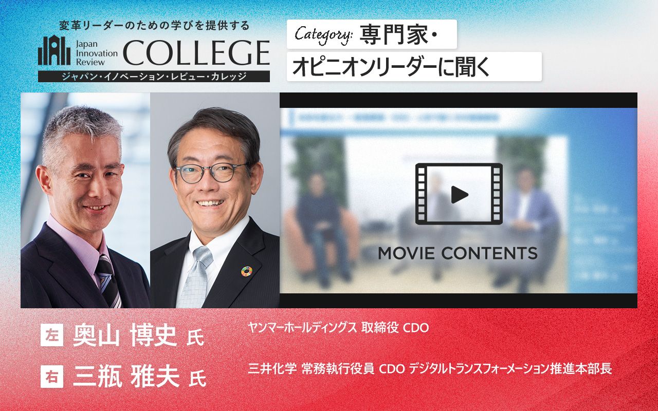 「未来を創る力」をテーマに、ヤンマーHD取締役CDOの奥山博史氏と三井化学常務執行役員CDOデジタルトランスフォーメーション推進本部長の三瓶雅夫氏が、司会を務める経済ジャーナリストの渋谷和宏氏とともに語り合う。デジタル化が急速に進む中で、両社はどう価値を生み出そうとしているのか。生成AIを活用した新規事業の創出から、競合の枠を超えたESGへの取り組み、変革を担う人材育成まで、多くの企業が抱える課題について、事例の紹介とともに掘り下げる。